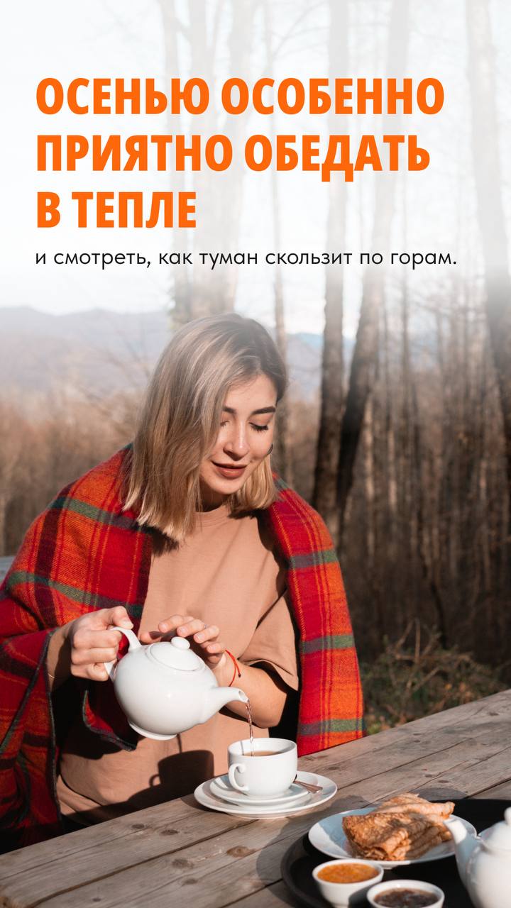 🍂 Осенью особенно приятно обедать в тепле и смотреть, как туман скользит по горам